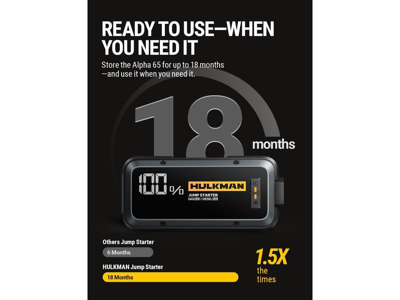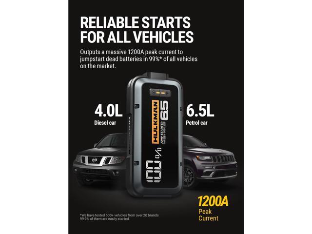 HULKMAN Alpha65 Smart Jump Starter 1200 Amp 12000mAh Car Starter for up to 6.5L Gas and 4L Diesel Engines with Boost Function for Totally Dead Battery 12V Lithium Portable Car Battery Booster Pack