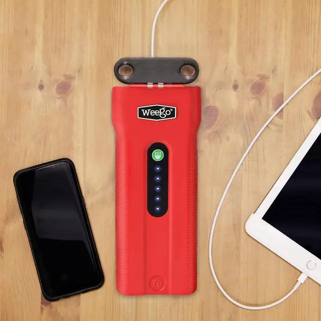 Multi-functional: Weego 70 doubles as a portable power source for recharging USB devices, like a smartphone or tablet. With Weego 70 you can also power 12V tools and accessories, and run a 600 lumen flashlight for hours on end.