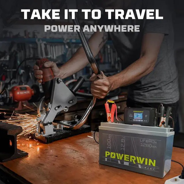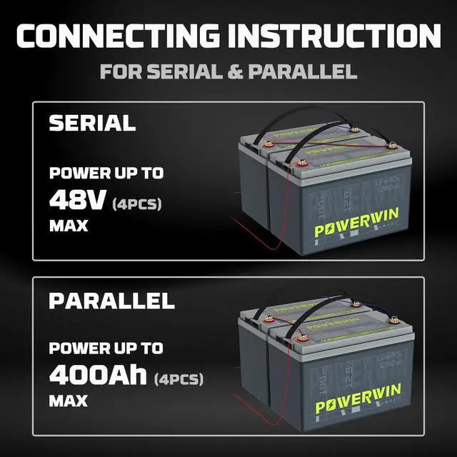 POWERWIN 12V 100Ah LiFePO4 Lithium Battery with 100A BMS Max Up to 15000 Deep Cycles LiFePO4 Battery 1280Wh for Trolling Motor RV Camping Marine and Off Grid BT100
