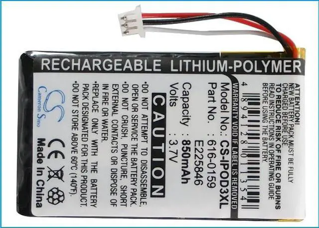 This Cameron Sino replacement battery is specifically designed for the iPod 10GB M8976LL/A, iPod 15GB M9460LL/A, iPod 20GB M9244LL/A, iPod 30GB M8948LL/A, iPod 3rd Generation, iPod 40GB M9245LL/A, and other compatible models, ensuring reliable and long-lasting power for your Apple iPod devices. Engineered to meet or exceed original manufacturer specifications, it provides consistent performance and a secure fit, making it an ideal solution for restoring the full functionality of your equipment. The battery is constructed from high-quality cells to maximize lifespan and minimize the need for frequent replacements. Easy to install, it supports seamless device operation and efficient charging cycles. Choose this Cameron Sino battery to maintain optimal performance and dependability for your compatible Apple iPod.