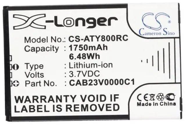 The Cameron Sino replacement battery is specifically designed for compatibility with the One Touch Link Y580, One Touch Link Y800, and One Touch Link Y800Z devices. Featuring a capacity of 1750mAh and 6.48Wh, this high-quality battery, part number CAB23V0000C1, ensures reliable power and extended usage for your mobile hotspot or portable device. Manufactured with advanced cells for optimal performance, it offers consistent energy output and a dependable lifespan. This battery is an ideal solution for users seeking to restore their devices original mobility and efficiency, supporting uninterrupted connectivity throughout the day.