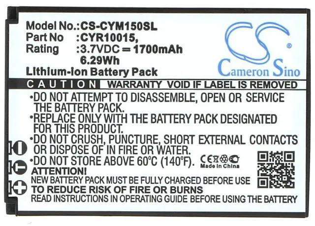 The Cameron Sino battery is specifically designed as a reliable replacement for the CM15 PN: CYR10015 and HE-129382 models. Featuring a robust 1700mAh capacity and delivering 6.29Wh of power, this battery ensures consistent and long-lasting performance for your compatible devices. Manufactured using high-quality cells, it provides dependable energy output and efficient recharging cycles. The batterys precise fit and compatibility help maintain device integrity and operational safety, making it an ideal choice for users seeking a trustworthy power solution. Choose Cameron Sino for dependable performance and extended device runtime.