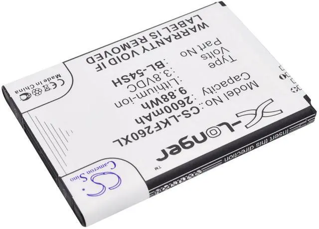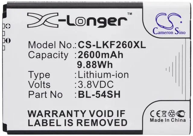 The Cameron Sino replacement battery is designed specifically for a wide range of LG smartphone models, including Bello 2, Bello 2 Dual, Bello II, D331, D373, D405N, D410, D722, D722K, D724, D725, D728, D729, and D800. This high-quality battery is compatible with part numbers BL-54SG, BL-54SH, EAC62018209, and EAC62018301. With a capacity of 2600mAh (9.88Wh), it offers reliable and long-lasting power, ensuring your device remains operational throughout the day. Manufactured with premium cells, this battery delivers consistent performance and is ideal for replacing old or worn-out batteries. Restore your devices battery life and enjoy uninterrupted connectivity with this dependable Cameron Sino battery.