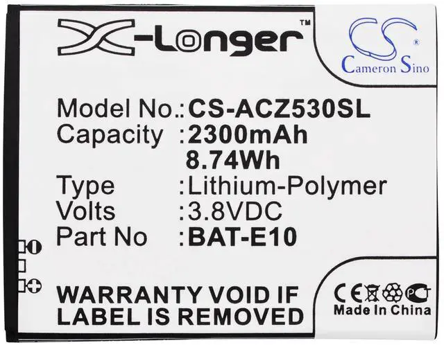 The Cameron Sino replacement battery is designed specifically for the Acer Liquid Z530 and Liquid Z530S smartphones, ensuring reliable power and optimal compatibility. With a capacity of 2300mAh (8.74Wh), this battery provides extended usage time, reducing the need for frequent recharging. Manufactured to meet high-quality standards, it features precise fitment for models requiring T02 PN: BAT-E10, BAT-E10(1ICP4/58/71), and KT.0010K.009 batteries. This battery is ideal for users seeking a dependable power source for their device, maintaining consistent performance and safety. Choose Cameron Sino for trusted battery solutions tailored to your devices requirements.