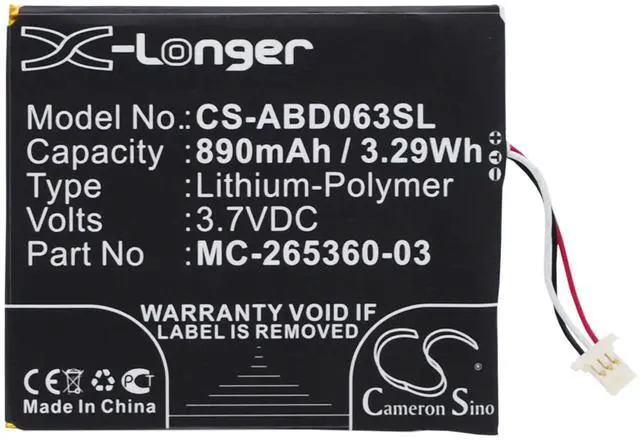 The Cameron Sino Battery is specifically designed for compatibility with a range of Amazon Kindle devices, including the Kindle 499, Kindle 558, Kindle 7th Generation, Kindle 8th Generation, Kindle X, SY69JL, and WP63GW. This high-quality replacement battery, with part numbers 58-000083, 58-000151, and MC-265360-03, offers a capacity of 890mAh and an energy output of 3.29Wh, ensuring reliable and long-lasting power for your e-reader. Manufactured to precise standards, it delivers consistent performance, allowing you to enjoy extended reading sessions without frequent recharging. The battery is engineered for easy installation, making it an excellent choice for restoring your Kindles battery life and maintaining optimal device functionality.