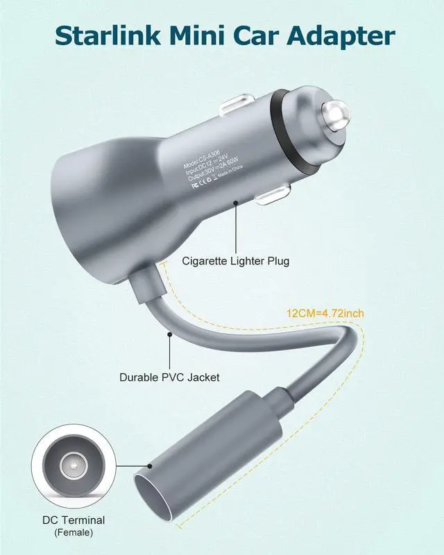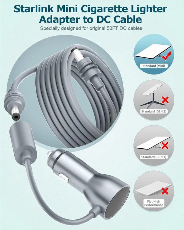 | Special Feature | 30V 2A Output, No Voltage Drop, Starlink Mini Extension Cable, Step-Up Cigarette Adapter, Waterproof DC Plug |