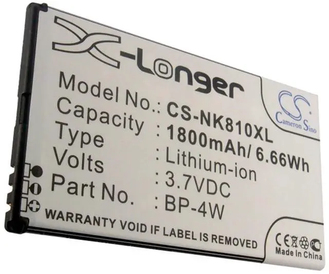 The Cameron Sino New 1800mAh Battery is precisely engineered for compatibility with Nokia Lumia 810 and Lumia 822 smartphones, offering a reliable and efficient power solution. Designed to meet or exceed original equipment specifications, this replacement battery ensures dependable performance and extended device usage. With a capacity of 1800mAh, it provides ample power for daily activities, helping to minimize interruptions and maintain productivity. The battery features a high-quality cell composition for enhanced longevity and stable output. It is an ideal choice for users seeking a trustworthy replacement to restore optimal device functionality.