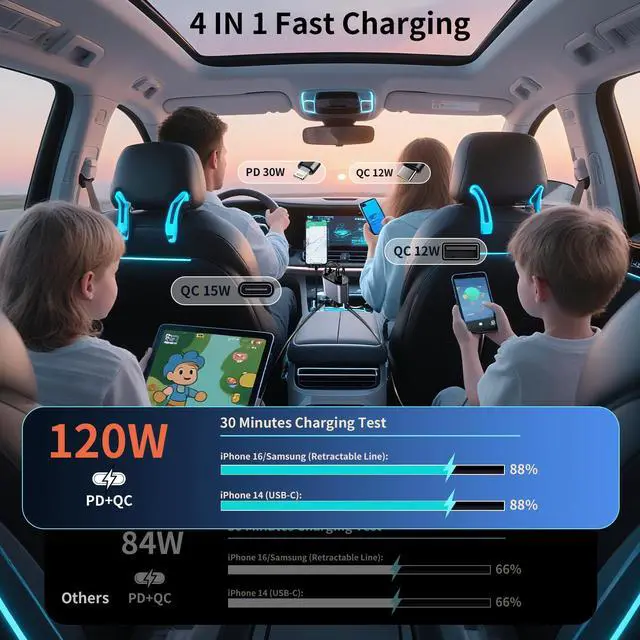 | Special Feature | 120W Fast Charging,Short Circuit Protection, Retractable cords, 180° Adjustable |