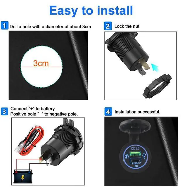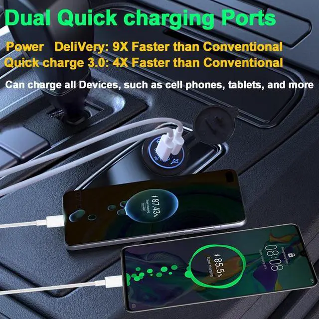 QC3.0 Car USB Port offers a maximum output of 18W,