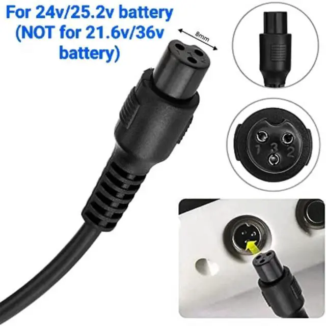 NOTE: Please check the specs details (Connector Type-3 Prong & Battery Voltage-24V/ 25.2V/ 25.9V & OR Your Original Charger Voltage-29.4V) to make sure this is the right one you need!!!