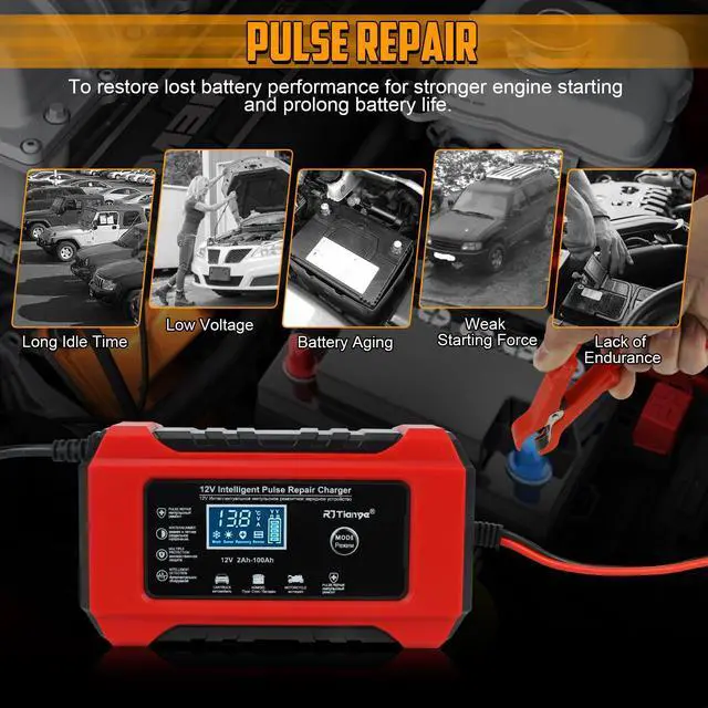 Quick Battery Charger12V 6Amp quick battery charger,Can be fully charged or repaired all 12v lead-acid automotive,marine and deep-cycle batteries,such as AGM, GEL, SLA, Flooded in cars, trucks,SUVs, motorcycles,lawn mowers, boats marine, etc.