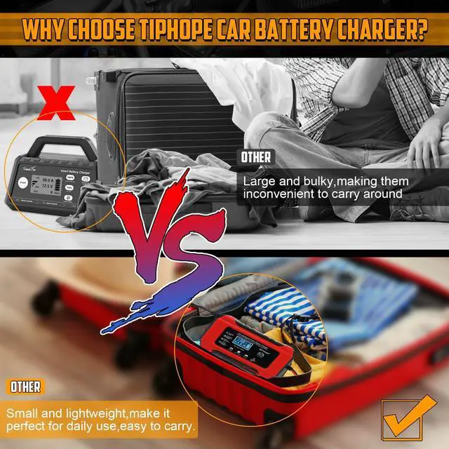 Efficiency Heat DissipationCar battery charger built in silent fans,combined with intelligent control, which can dissipate heat quickly. uses ABS flame-retardant shell,corrosion-resistant, electric shock,more durable.