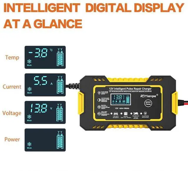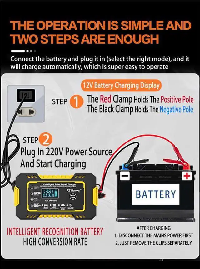 Charging and maintaining batteries of cars, trucks, motorcycles, lawn mowers, motor boats, tricycles, electric vehicles, SUV, marine, etc.