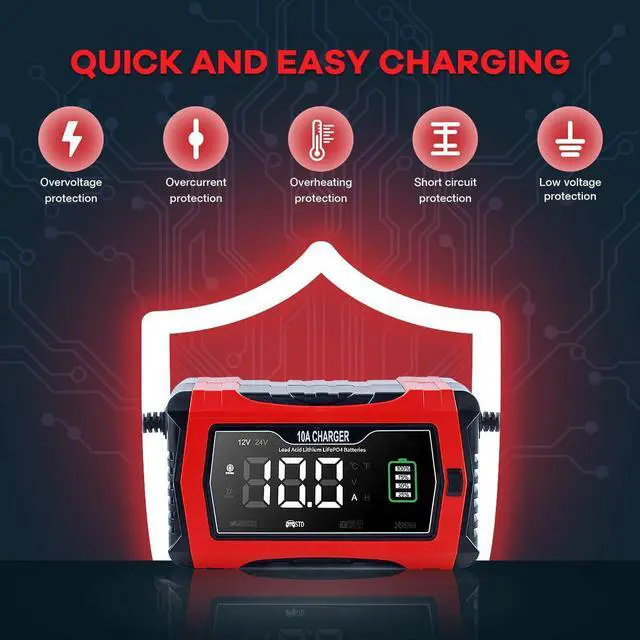 2.Fully automatic microprocessor control.10-stage charging program provides the best and most efficient battery charging.