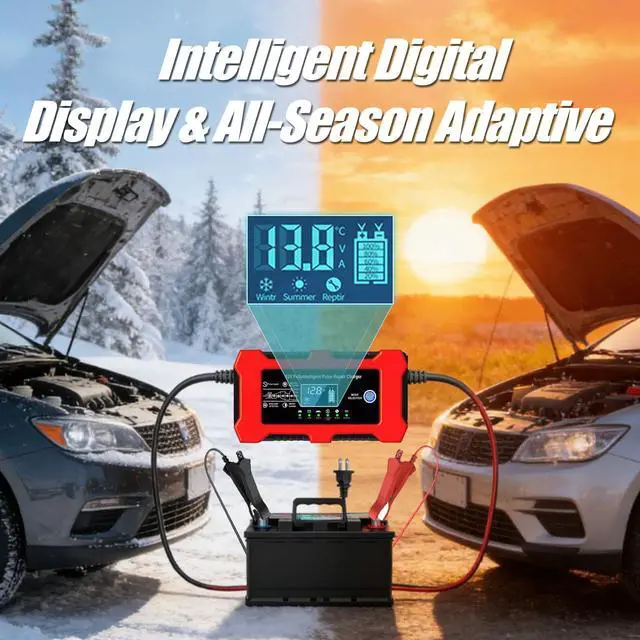 10A fast charging & intelligent pulse repair technology : The trickle charger for car battery 12v for car features a powerful 10a output current, effectively charging batteries from 12V 4ah to 100ah. Battery maintainer utilizes advanced intelligent pulse repair technology (not suitable for use with lifepo4) to significantly extend battery life.A