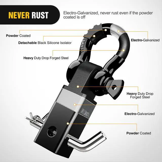 - Package Included: 2" Shackle Hitch Receiver, 5/8" Trailer Hitch Pin, 3/4" D-ring Shackle with Shackle Isolator & 2PCs Washers kits