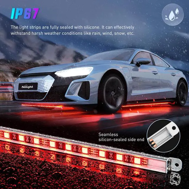The LED Strips are protected by the flexible rubber tubing. Ensure it can work at any rainy and foggy days.