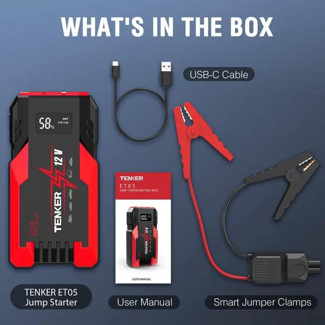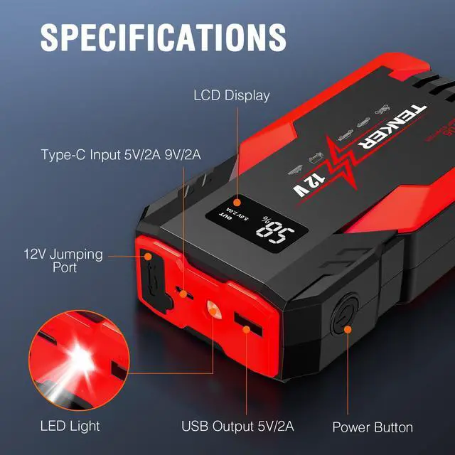 TENKER 4000A 10000mAh Car Jump Starter Booster Jumper Box Power Bank Battery Charger 12V Portable