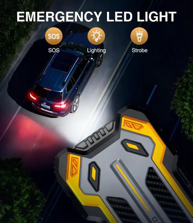 59.2Wh Power BankDon't worry about electronic devices running out of power in an emergency! The jump starter power pack is not only a portable jump starter for cars, but also a large-capacity 59.2Wh power bank. Equipped with dual USB outputs and a USB-C input, it can efficiently charge smartphones, tablets, laptops, or other USB electronic devices