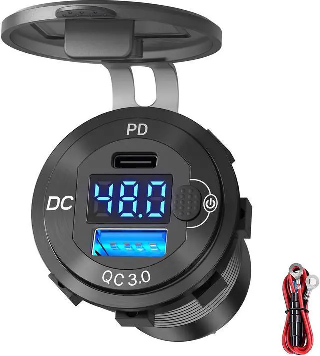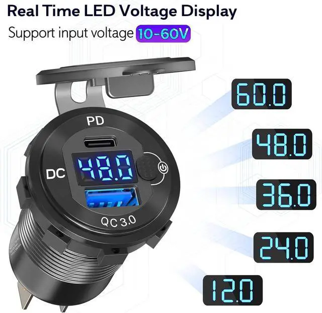 QURO Aluminum High Voltage USB Outlet 12V 24V 36V 48V 60V Car Battery Charger Cigarette Lighter Power Adapter DIY Kit for Cars Trucks