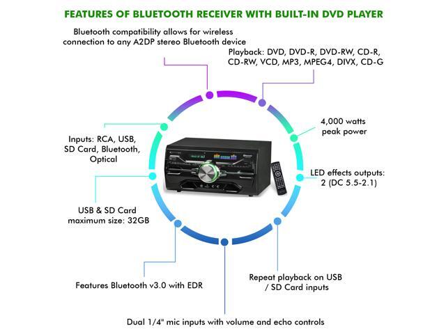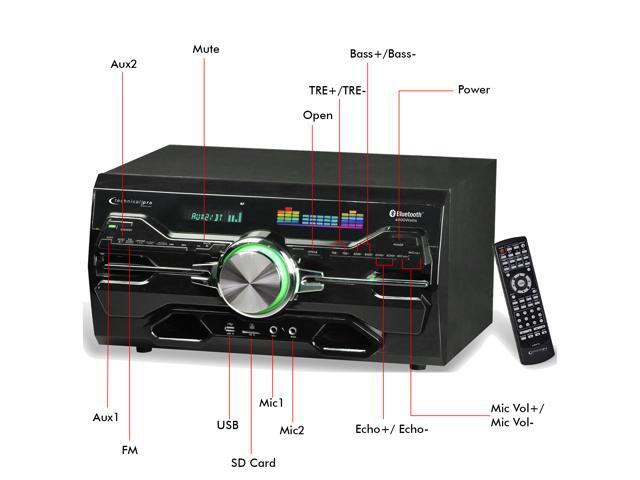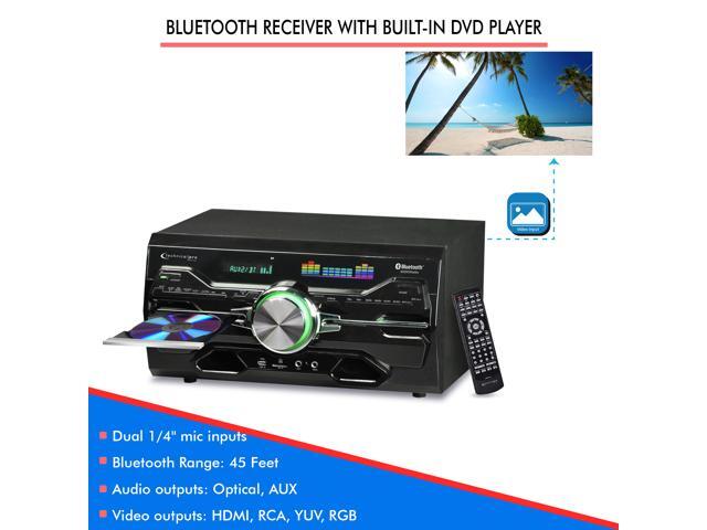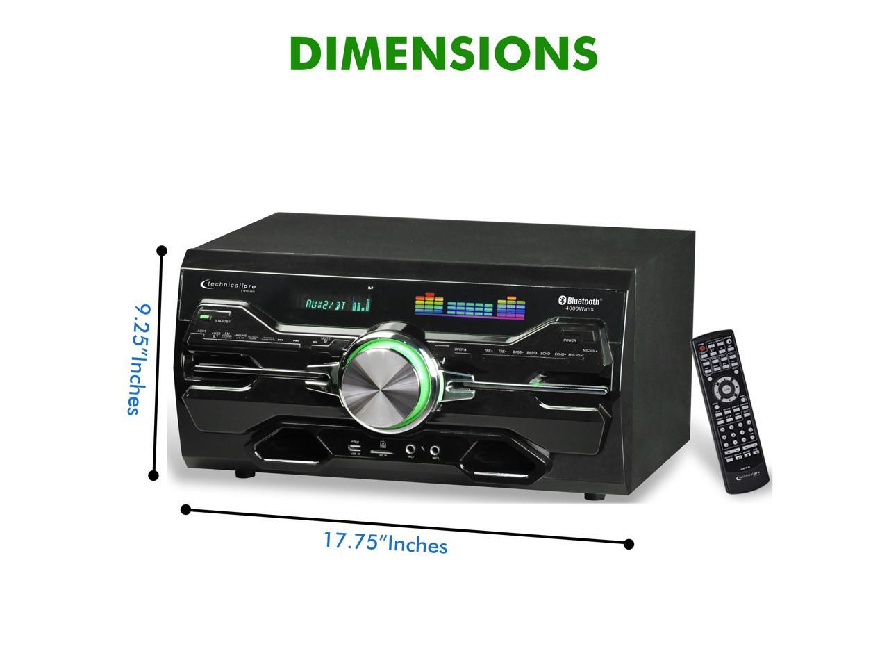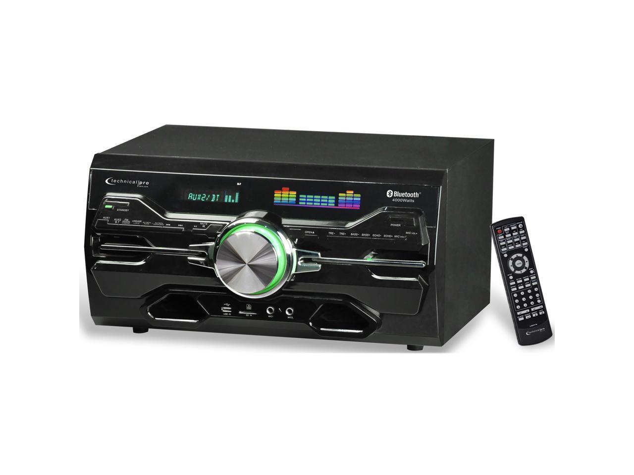 Technical Pro, Professional Bluetooth Home Audio Receiver with Built-in DVD Player, Dual 1/4'' Mic & USB SD Inputs,Volume & Echo Controls, 4000 watts, Remote Included, for Karaoke, Party's & More