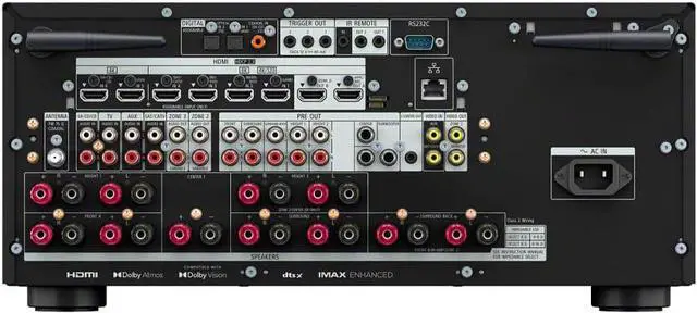DTS: X object-based audio, for movies that look amazing and surround you with sound from all directions. Support for the latest in HDR technology enhances this experience with deeper blacks and rich contrast. Dual HDMI outputs and Zone 2/Zone 3 functionality allows two different rooms to watch their own UHD content, with a third zone enjoying audio playback. Playback from local or online sources, thanks to built-in Wi-Fi, Bluetooth, and Ethernet connectivity.
