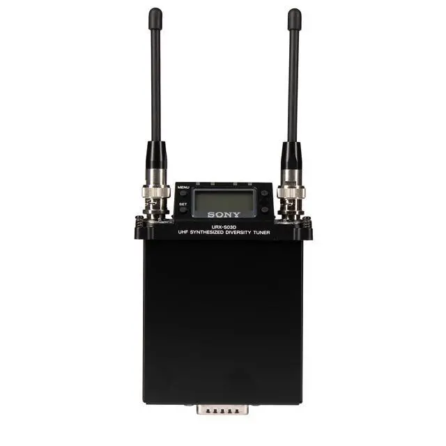 The Sony URX-S03D/25 is a dual-channel slot-in wireless receiver designed for professional ENG and broadcast applications, operating in the UC25 frequency band (536608 MHz). Featuring Sonys True Diversity reception, PLL synthesized tuning, and Digital Audio Processing, it delivers stable RF transmission and natural sound with ultra-low 0.38 ms latency. It supports up to 2772 frequencies, 14 transmitters per band, and integrates directly with Sony XDCAM and HDCAM camcorders via a DB-15 interface. With auto channel scan, IR sync, and wide 23 Hz18 kHz frequency response, this rugged metal receiver ensures seamless wireless audio capture in demanding environments.