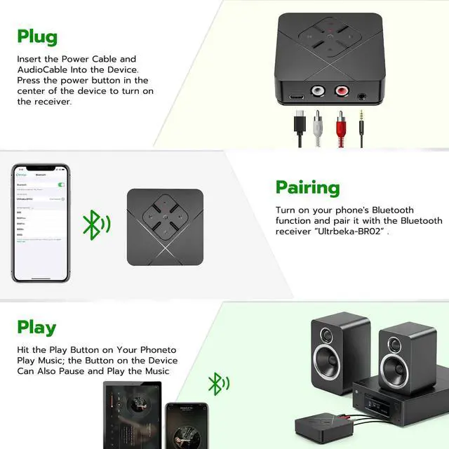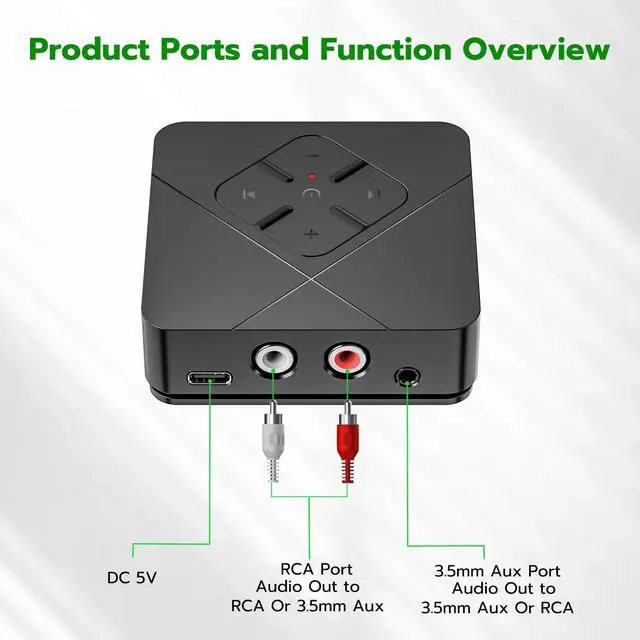 Immersive Audio ExperienceThe Ultrbeka bluetooth to rca adapter's high quality audio, low latency technology, and noise cancellation give you a truly immersive experience with audition synchronisation.