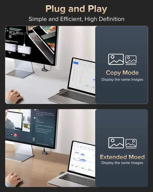 The transmitter supports devices with USB-C ports and DisplayPort (DP) Alt Mode, including Windows, macOS, Linux, and iOS devices such as MacBook Air, MacBook Pro, Dell XPS 13, and Dell XPS 15.