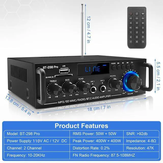 This professional indoor stereo receiver is designed with independent 2.0 channel outputs, and each channel can handle up to 400W of peak load power