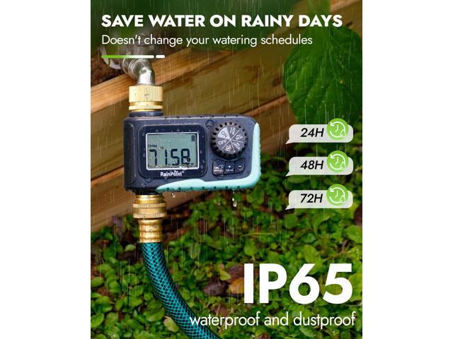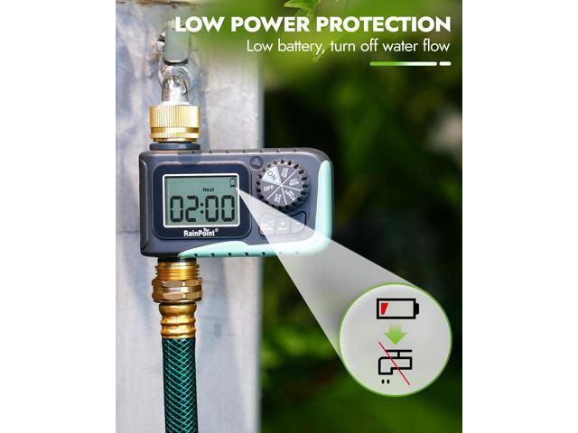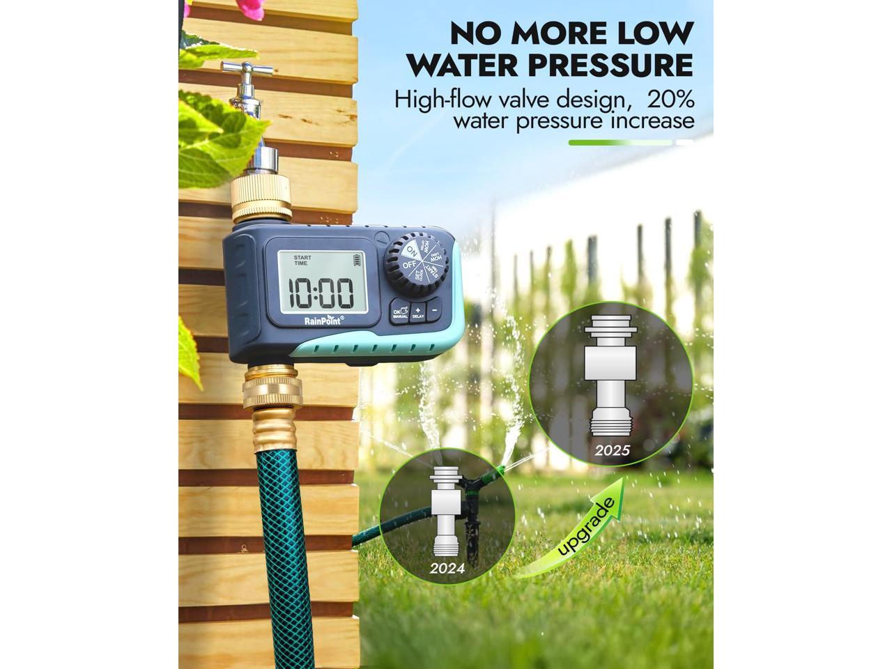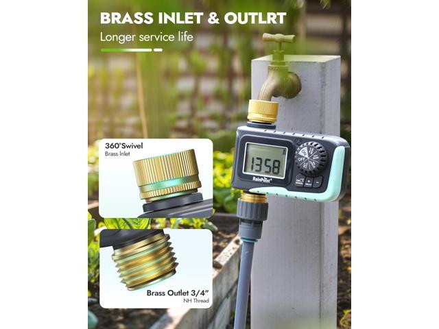 - BRASS INLET & OUTLET: 2025 Newly upgraded water hose timer with pure brass water inlet and outlet metal thread, strong and durable, can withstand up to 116psi. Built-in metal filter gaskets can effectively prevent sediment and other larger particles from entering the irrigation system. The body shell adopts heavy-duty weatherproof construction and UV-resistant materials, which is perfect for outdoor garden watering.