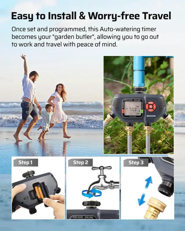 [Leak-proof for Outdoor Use] Pure zinc integrated tap connector avoids water leakage in use and supports standard 3/4 sprinkler timer; ABS plastic shell provides resistance to sunlight and waterproofing for outdoor use, No need to change frequently; sustainable water pressure is 120 psi, tap water or a pressurized water source ensures a normal drain