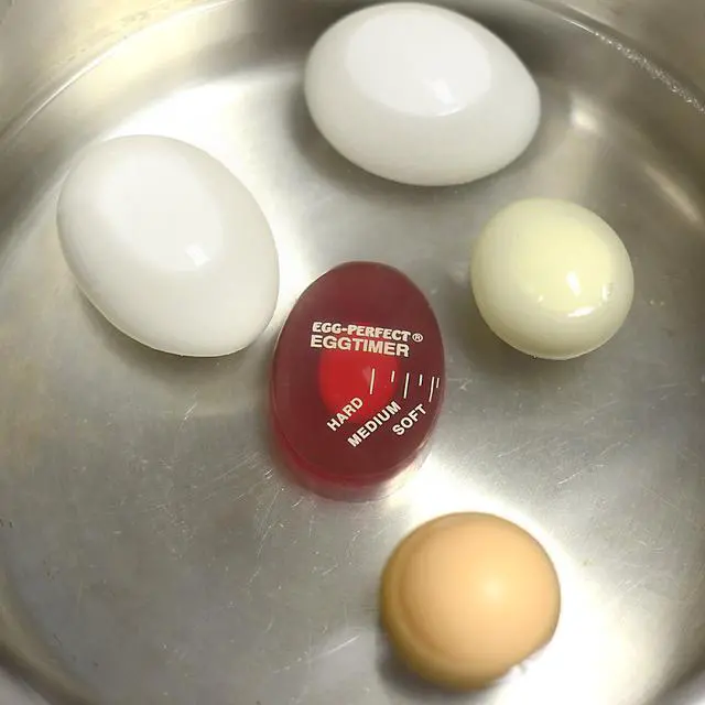 This egg timer will take the guess work out of boiling eggs! As the timer heats up, the red face changes color, indicating soft, medium, hard and stages in between, absorbing heat exactly as an egg does. The result is the perfect boiled egg! Place the eggs in a single layer at the bottom of a pan. Cover with at least an inch or two of room temperature water. Egg timer darkens as eggs cook. Calculates cooking stages precisely by temperature, not loosely by time. Adjusts to the number of eggs and level of water in the pan. Helpful tip: When done, remove pan immediately from the heat and rinse eggs in cold water, producing tender, not rubbery eggs and minimizes cracking. Hand wash for best results.