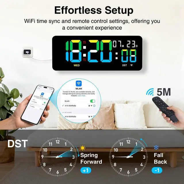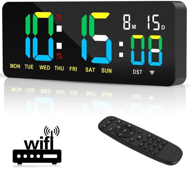 XREXS WiFi Time Sync Multifunction Wall Clock with Remote Control