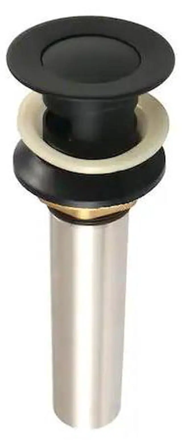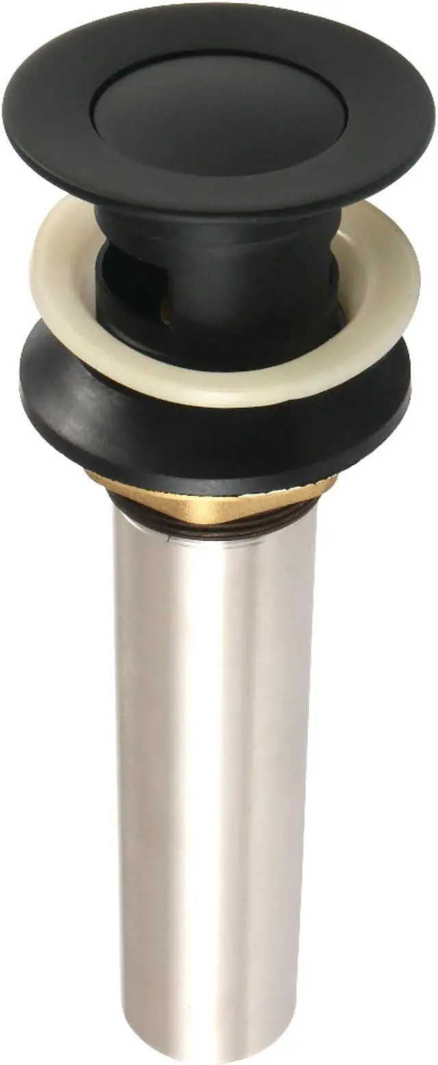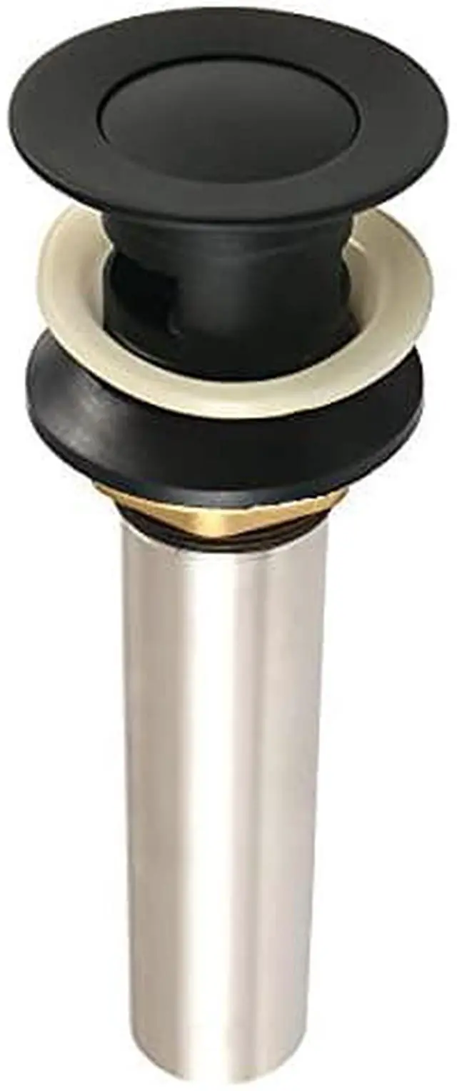 Push-up bathroom drains feature a spring mechanism to easily close and open the fixtures. Available in multiple finishes to match your faucet, the Complement Push-Up Drain With Overflow will fit standard bathroom sink sizes.