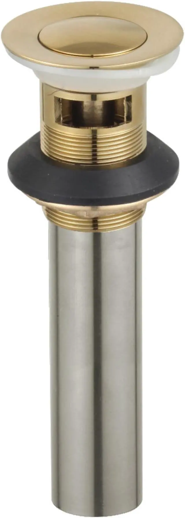 Push-up bathroom drains feature a spring mechanism to easily close and open the fixtures. Available in multiple finishes to match your faucet, the Complement Push-Up Drain With Overflow will fit standard bathroom sink sizes.