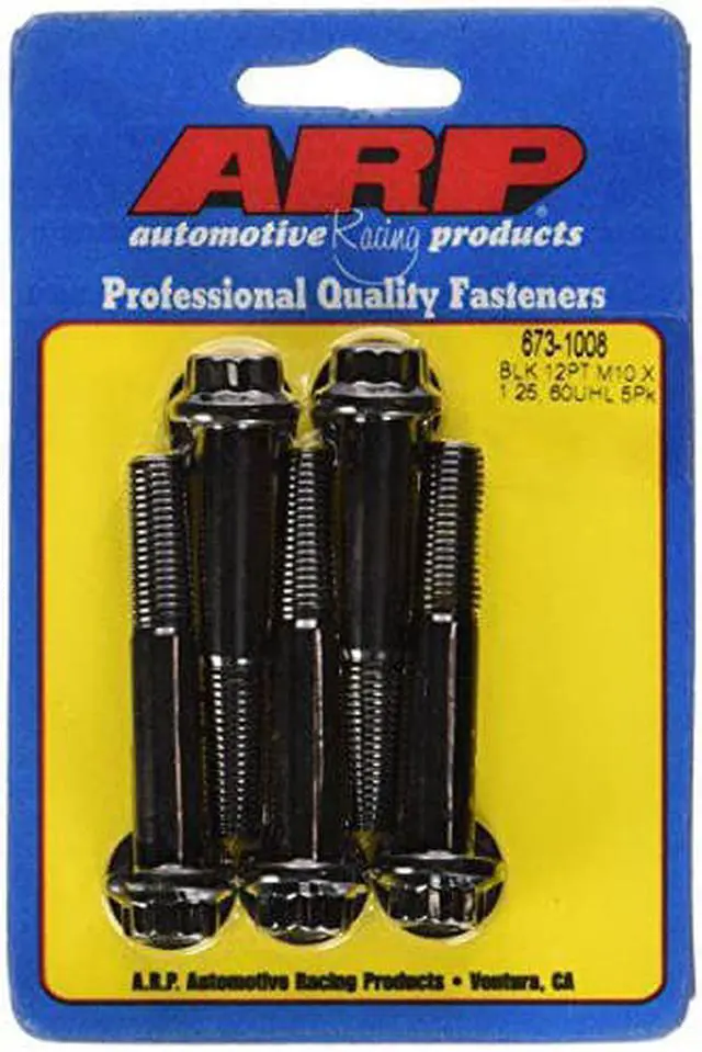 Now you can use premium quality ARP stainless steel or chrome moly fasteners to install most anything on a car, boat or trailer. The specially alloyed ARP 300 stainless steel and heat-treated 8740 chrome moly bolts (black oxide finish) are nominally rated at 180, 000 psi tensile strength to provide a substantial extra margin of safety over Grade 8 hardware. Whats more, you cant beat the gorgeous looks of ARPs specially polished stainless steel fasteners, and their ability to resist rust. Theyre truly maintenance free You can get 5-packs (washers included) of any diameter bolt from 1/4 to 1/2 or M6 to M12 in lengths ranging from 1/2 to 6, with ARP12-point heads.