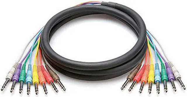 The Hosa CSS805 is a 16.5 (5 m) 8-channel stereo male 1/4" Phone to stereo male 1/4" Phone snake cable for audio production applications.