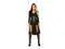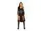 • Protect yourself at all costs. Take down your enemies in this Queens Assassin costume featuring a black dress with a V-neckline, long sleeves with studded arm wraps, an attached hood with a studded trim, a long skirt with high front slits, a vinyl wait cincher with a front hook closure, stud accents, a lace-up back closure, and matching shorts. (Pantyhose, swords and leg warmers not included.)