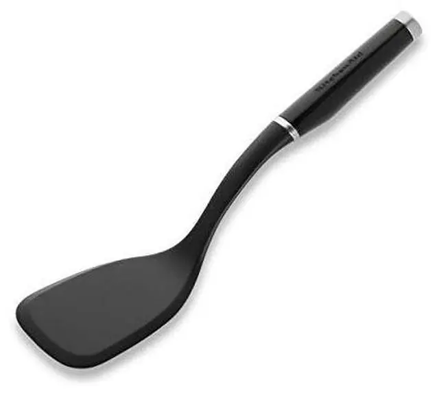 This KitchenAid nylon Short turner is designed for greater control when lifting and turning foods, like pancakes and grilled cheese The nylon turner is safe to use on all cookware, including non-stick and is heat resistant to 450Af232Ac The turners head is constructed of 30% glass reinforced nylon, which makes it strong and durable for use in the kitchen The glossy ABS handle features a debossed logo, as well as an ABS satin chrome plated bolster and end cap Dishwasher safe for easy cleanup One year hassle-free replacement and lifetime limited