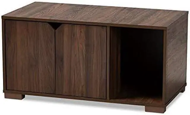 Smart and practical, the Jasper house keeps that unpleasant litter box tucked away. Built from sturdy wood, the Jasper showcases a sleek walnut brown finish that complements any interior color palette. Two doors provide easy access to clean the litter box, while an open space adjacent to the doors allows your cat to come and go as they please. Featuring a clean, modern design, the Jasper is well suited for any space. The Jasper house is made in Malaysia and requires assembly.