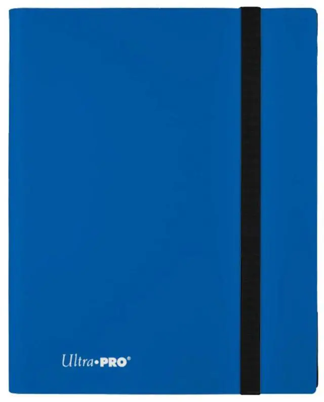 9-Pocket Pacific Blue PRO-Binder with embossed middle black web material gives cards a classic framed look. Side loading pocket design to prevent cards from easily falling out. Elastic strap holds the binder shut when not in use. All materials made from archival-safe, acid-free non-PVC material. Holds 360 cards in Ultra Pro Deck Protector sleeves.