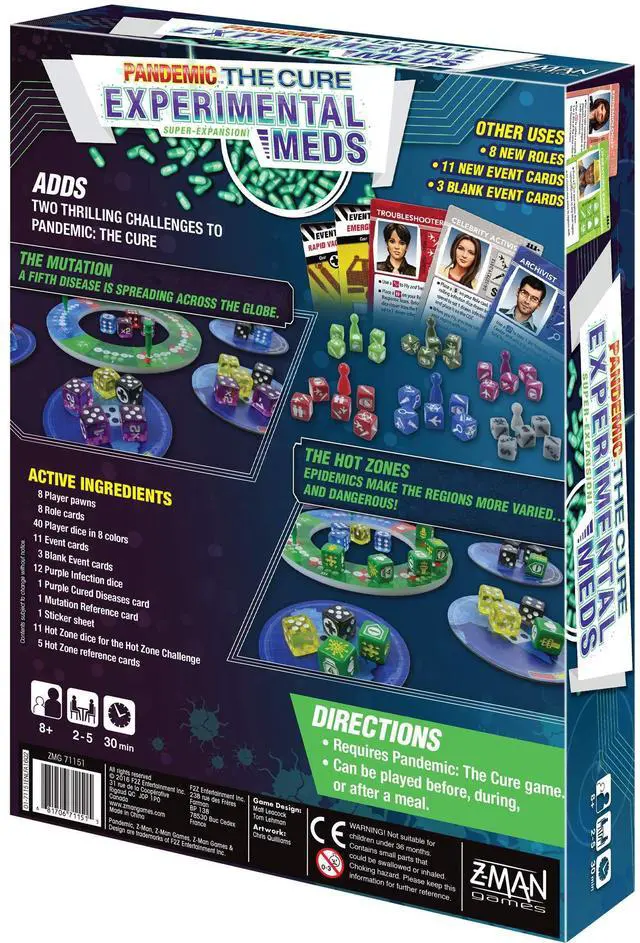 Face dangerous new threats in Pandemic: The Cure - Experimental Meds as a fifth virus spreads across the globe and Hot Zones make their entrance, changing the rules for the worse! Fortunately, new medical experts have joined the fight to help you.