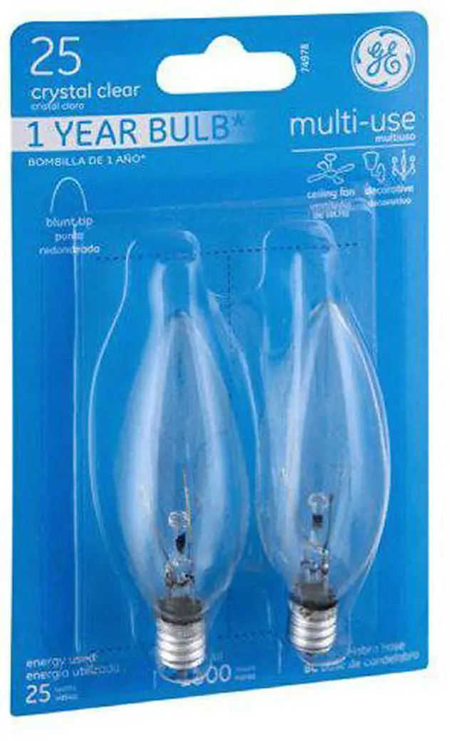 • GE 25 watts B10 Incandescent Bulb 155 lumens Soft White Decorative 2 pk
