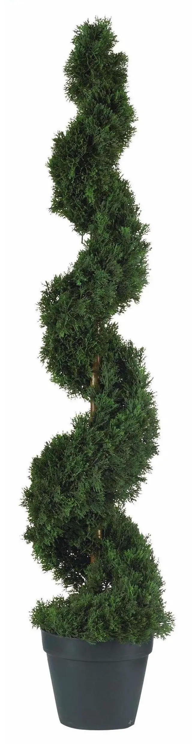Crafted with quality and detail in mind this stunning cedar silk tree will brighten up any space. It features 1130 meticulously designed leaves each with an authentic texture. This spiral shaped cedar stands 4 ft. tall and sits in a nursery pot. Perfect for a foyer or outdoor covered entrance way this Cedar Spiral tree will add that perfect touch of traditional colonial elegance to any in area in your home.