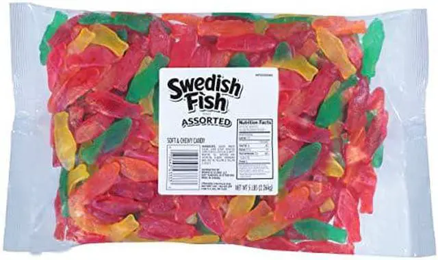 SWEDISH FISH Assorted Soft & Chewy Candy delivers the classic flavor and easily recognizable shape in delicious soft, chewy candy pieces. This soft candy comes in the signature fruity SWEDISH FISH flavor and fun fish shapes in a variety of colors. This fat free candy makes the perfect movie theater candy, party snack or everyday treat to satisfy your sweet cravings. This fruit flavored candy comes sealed in a large bag to keep them fresh, and this bag of candy is easy to share at parties or in an office break-room.