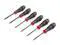 Blending power and speed, the unique handles of the TEKTON 6-pc. Torx® High-Torque Screwdriver Set combine three-sided geometry for maximum torque and rounded top and bottom sections that let your fingertips work quickly to spin long fasteners.