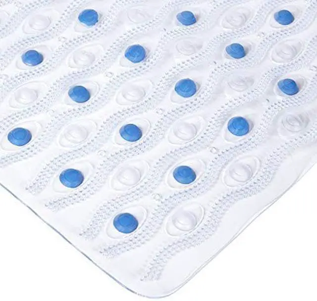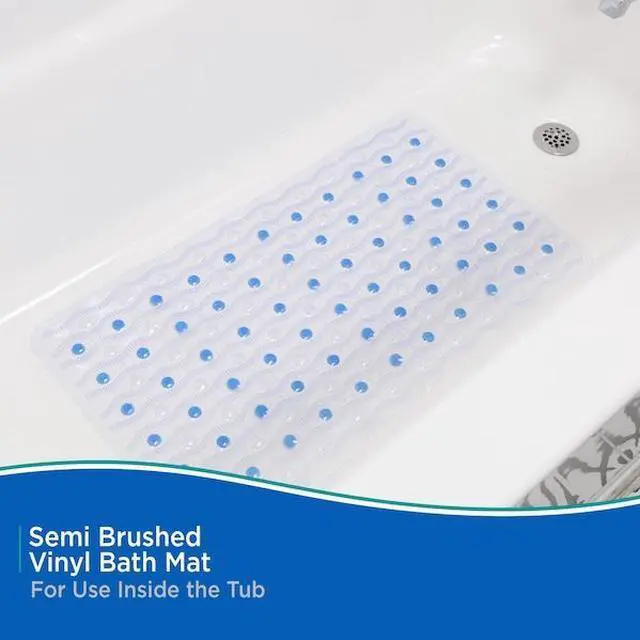 Your feet will love the soft, textured feel of this bath mat. Kenneys Semi Brush Vinyl bath mat provides added comfort in your shower and helps prevent slips and falls. Suction cups secure the mat in place.
