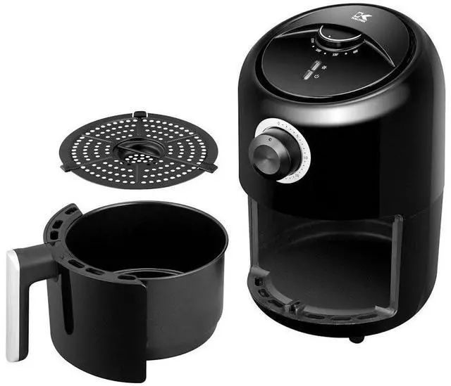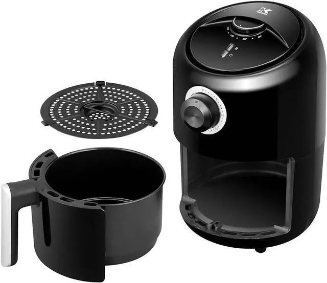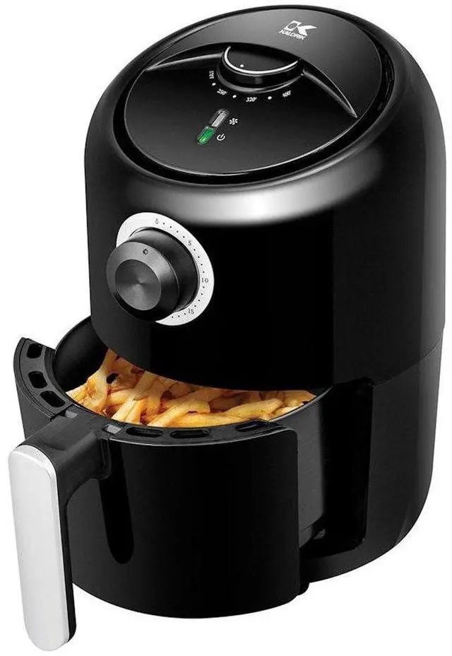 Sleek, compact, guilt-free. The Kalorik 1.75 Quart Personal Air Fryer fries, bakes, grills, and roasts your favorite foods with little to no oil needed. The rapid hot air circulation technology cooks everything from french fries and onion rings to steaks and cakes, without any oily smell, splatter, or mess. The compact design is perfect for serving up to two people and makes for convenient storage. Time and temperature control dials make cooking precise and simple. Make healthy cooking easier and tastier with the Kalorik Personal Air Fryer.