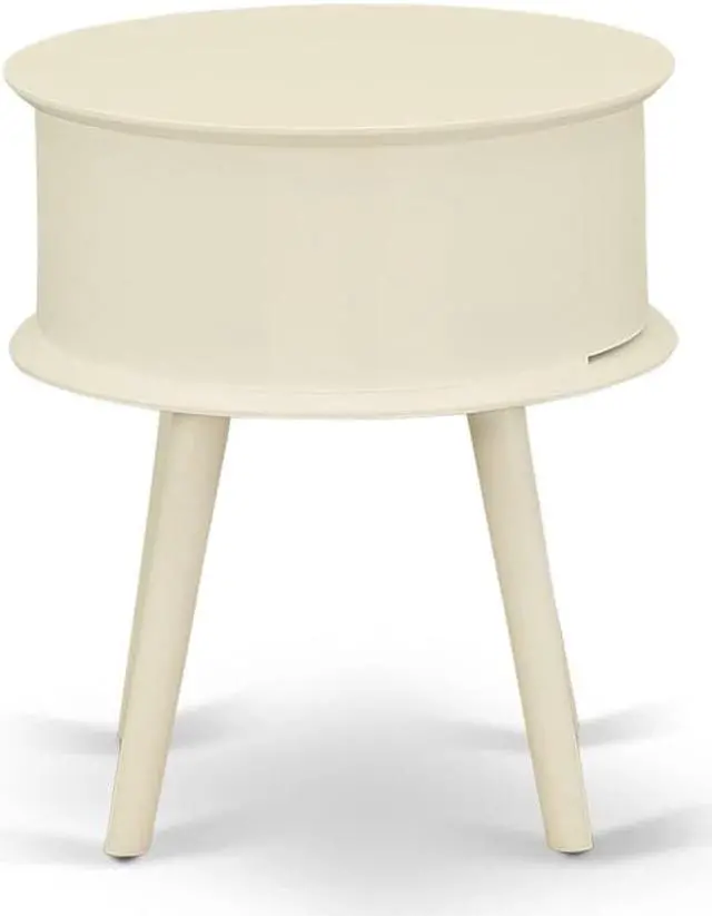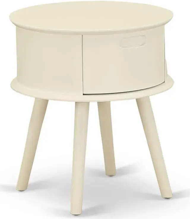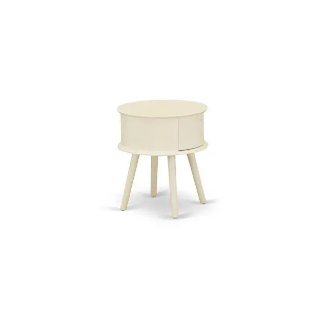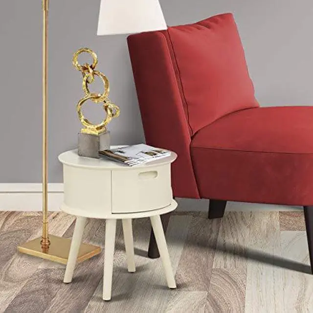 Gordon modern nightstand table: Offers a trendy elegance to your bedroom with our wonderful round table night stand. On the simple beauty furniture, this versatile bed table combines economy and grace. Showing that less is sometimes more, the single door hosts a plain inset panel and a brushed metal pull as its only decors, while the tapered legs give a beautiful counterpoint. Wood nailhead accents finish the piece with a handmade appear and feel. Asian Wood delivers this stand in a White or Natural finish. your living area space with this wonderful round-shaped end table. assemble and adjust their areas, the timeless style of this unique small bedside table fits perfectly with any decorations.